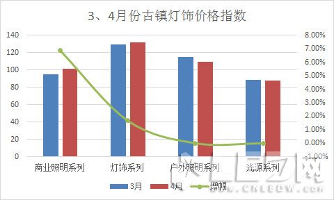 灯饰系列月均数为132.01点,较3月上涨1.67%;