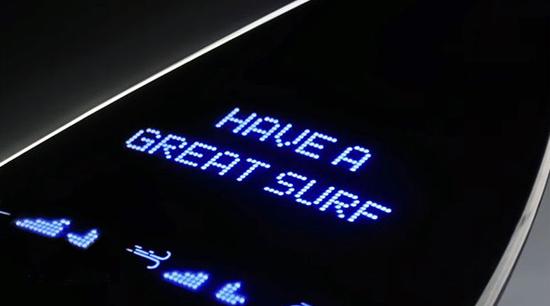 从视频上看,三星Galaxy系列冲浪板在外观上与普通冲浪板并无差别,但是在这个冲浪板上配备了一块LED屏幕,该屏幕能够显示地理位置信息、风向、海浪强度及高度,教练可以通过智能冲浪板向运动员发出指导。