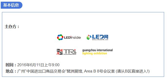 2016年LED照明市场是否会延续2015年的强势洗牌整合?全球LED市场走势如何?互联网冲击下的照明行业将迎来什么新模式?在智能照明、小间距屏、UV等高毛利市场冲击的大潮下,各大厂技术重心分别是什么?6月11日,欧司朗、三星、晶元、德豪润达、木林森、国星、鸿利、易美芯光等业内八成大咖将汇聚LEDforum2016共同探讨这些问题。