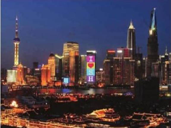 这也许是上海最著名的户外LED屏—位于陆家嘴黄浦江畔的花旗集团大厦,6030平方米的LED全彩显示灯光幕墙。每晚6时到11时,这里是最著名的浦江夜景之一。