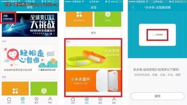 设置完成后再看看APP的功能,APP融入了很多小米的风格,在发现界面下,活动栏目下植入广告!对第三方开放接口,这也进一步证明小米是一家互联网公司,通过硬件圈用户,围绕用户、流量等赚取硬件难以比拟的收入。小米手环随着用户体量的增加,必将成为小米生态链中重要的一环。