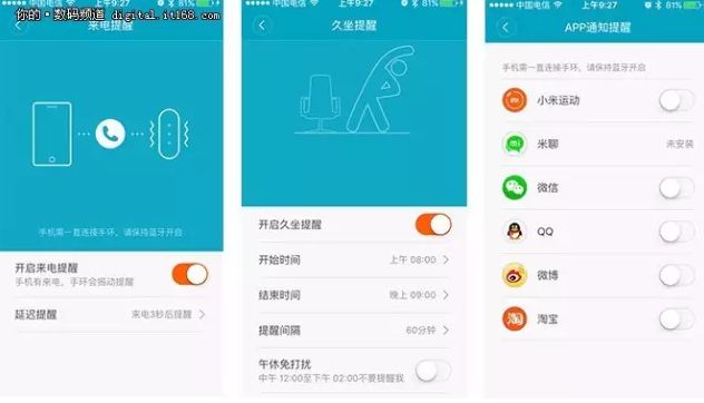 但遗憾的是无法知晓来电者姓名和电话号码,所以想要更好的体验效果,小米手环2还有很高的提升空间。对于社交达人来说,APP提醒功能更可让你成为达人中的达人。久坐提醒根据上班时间以及间隔时间进行设置提醒,满足不同上班族的对于时间的需求,同时支持午休打扰,让你静静的度过午休。