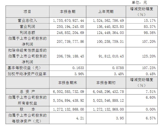 佛山照明7月10日晚间披露2016年半年度业绩快报。公司在今年1-6月实现营业总收入17.56亿元,同比增长15.17%,实现净利润2.08亿元,同比增长107.20%。扣非后净利润2.07亿元,同比增长125.20%。
