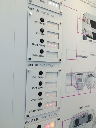 LEDinside研究经理吕理舜表示,以中国大陆市场而言,中国大陆车灯仍以价格为LED导入与否的主要考量。由于车内灯与车尾灯的LED规格与照明/背光用LED类似,目前导入比重超过70%,接近国际水准。DRL(日行灯)近年在中国大陆产品技术发展迅速,部分中国大陆车厂甚至改用低功率LED导入DRL应用。LEDinside预估2016年中国DRL渗透率高达47%。高功率的High/LowBeam(远近灯)因技术门槛较高,仍以进口为主,渗透率低于3%。