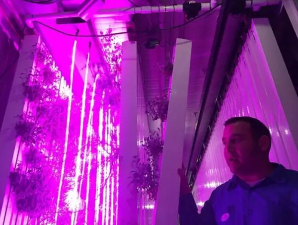 植物都是无土栽培的,生长在垂直排放的水培架上,空间利用率很高,一个箱子可种植上百种植物。一般植物三周就能成熟,一个箱子的植物够Google总部吃一周。