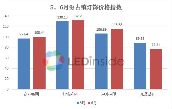 商业照明系列6月均数为100.44点,较5月上涨2.87%;