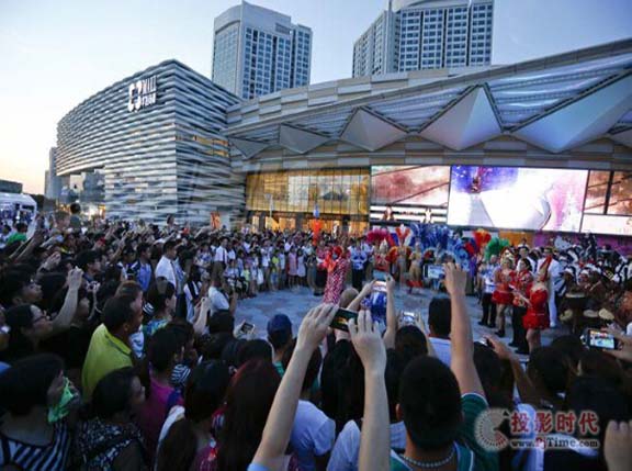 珠海华发商都狂欢盛宴在9月30号晚如约而至,虽然天公不作美,在当天突降大雨,但是这并没能阻挡人们的热情,几万人在外围场冒雨观看并参加当天的活动。在华发商都超大型生态广场上,筷子兄弟“空降”而来,一首神曲《小苹果》引领现场万人齐跳,将气氛推向了最高点。在时尚名品秀中,众多时尚精品店齐聚立翔慧科8000平米LED巨型天幕下,映衬着天幕的光彩,显得格外耀眼。不计其数的人们在光顾这些名品店铺同时,也拿起手中的手机、相机拍摄着头顶LED天幕显示的震撼画面。在随后几天举行的国庆广场表演、魔幻巡游、游艇豪车展等丰富多彩的活动中,立翔慧科的工程师和LED巨型天幕一直陪伴着来往的人流,感受着别样的狂欢乐趣。